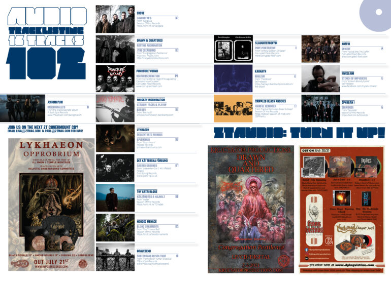CD covermount tracklist 16 tracks including new music from Ænigmatum, Crippled Black Phoenix, Hooded Menace, Gravesend, Lykhaeon and more!